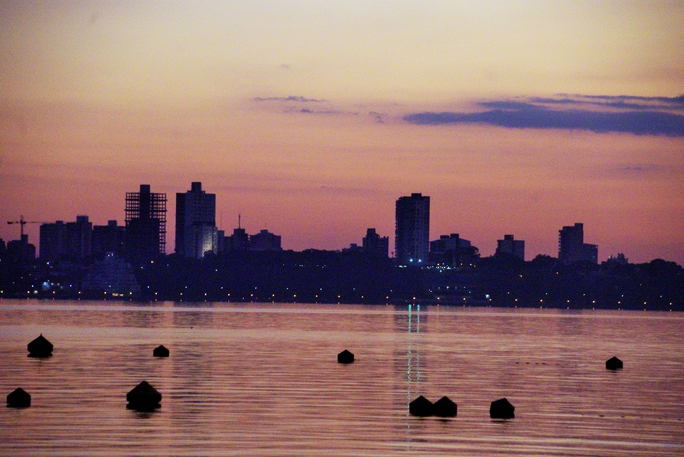 Vor viereinhalb Jahren war ich mal in Posadas. Das ist die argentinische Zwillingstadt zu Encarnation in Paraguay. Getrennt vom ewig breiten Rio Parana und verbunden mit der Brücke Roque Gonzalez de Santa Cruz. Zum übersetzen nach Paraguay war ich damals zu erschöpft. Die beiden Städte schaukeln sich zu Höchstleistungen. In Posadas -habe ich sehr relaxed und etwas langweilig in Erinnerung- soll sich einiges getan haben. Jetzt besuche ich die Karnevalshochburg Encarnation und hier hat man tolles geschaffen: Es ist eine Stadt zum Wohlfühlen. Den richtig geilen Stadtstrand, Abschnitt der Costanera, gibt es erst seit wenigen Jahren (2012), vermutlich zum 200-jährigen Staatsjubiläum (Bicentenario 2011). In diesem riesigen Fluss Rio Parana Baden, dazu ein Caipirinha, am Schluss ein fetter Sonnenuntergang mit der Skyline von Posadas – da bleibt kein Wunsch offen. Heute keine Witze.