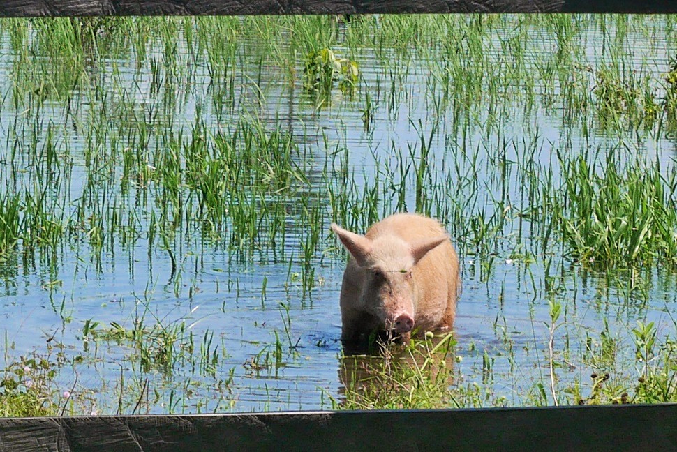 Ich verabschiede mich von den Gastgebern und erkläre wie immer -mit dem Blick auf die Kaimane- , dass das 7:1 eine einmalige Sache war, Brasilien momentan toll Fußball spielt und sicherlich Weltmeister wird beim nächsten Mal. Die Familie hätte mir bestimmt hinterher gewunken zum Abschied, wenn das Aufstehen nicht so beschwerlich und die Hände nicht mit Messer und Maniokwurzel belegt gewesen wären. Oder ich einfach jemand anderes gewesen wäre. Die Sau zumindest wälzte sich vor Begeisterung einmal im Schlamm.